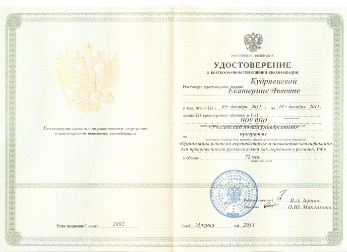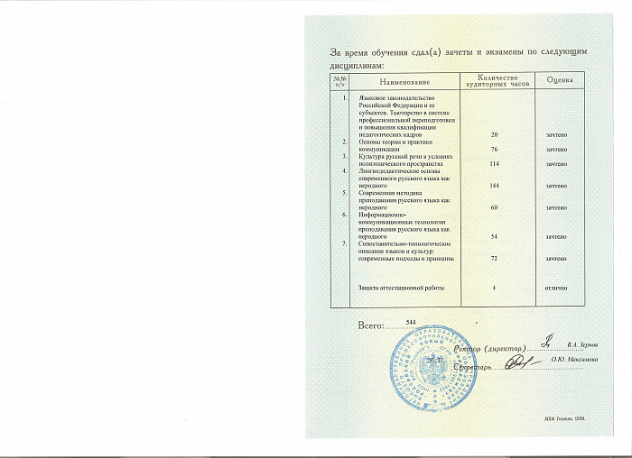 Организация работ по переподготовке и повышению квалификации преподавателей русского языка как неродного