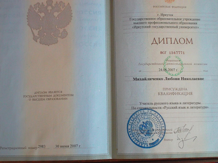 Сведения об образовании