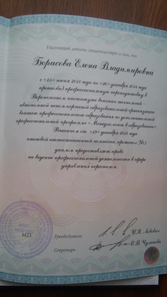 Сведения об образовании