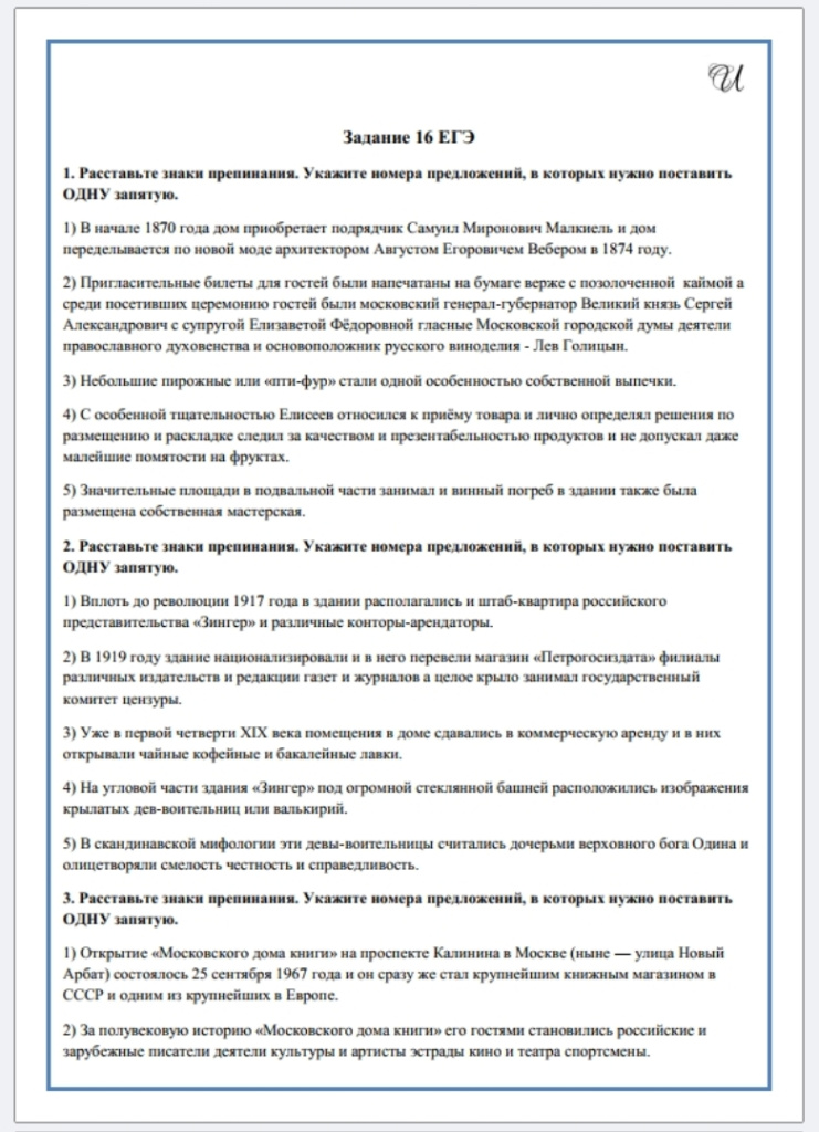 Тренажёр по пунктуации состоит из 3 вариантов для отработки задания № 16.