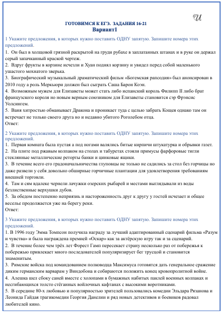 Тренажёр по пунктуации. Задания 16-21 ЕГЭ по русскому языку