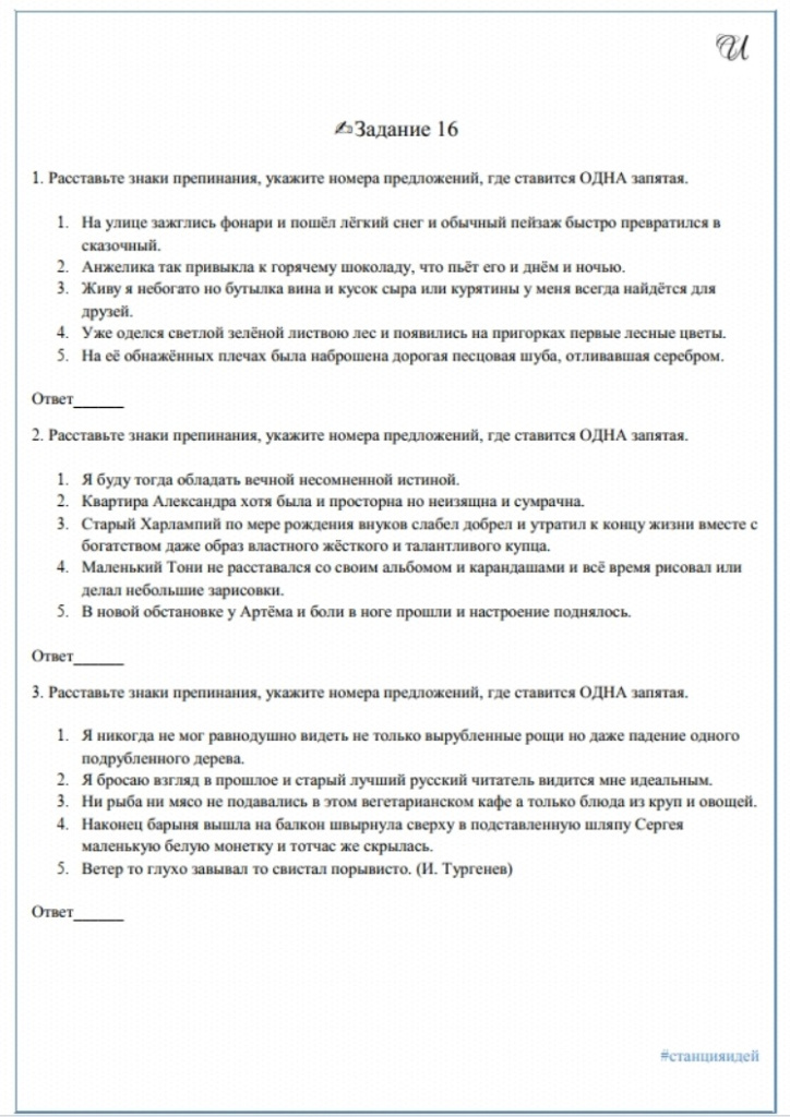 От простого к сложному. Так можно охарактеризовать комплекты упражнений на пунктуацию в формате заданий 16 и 17 ЕГЭ по русскому языку. Каждое пунктуационное правило отрабатывается отдельно, чтобы школьники научились видеть все синтаксические элементы, которые необходимы для его применения.