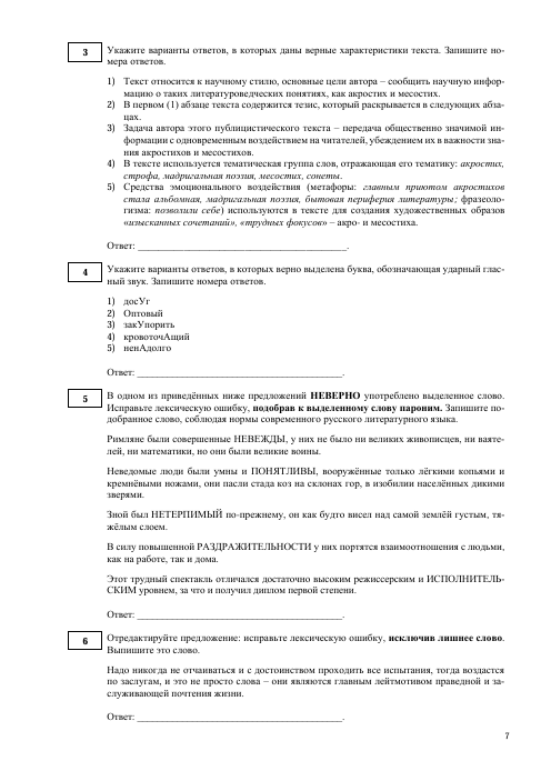 - типовые бланки ответов, заполнение которых необходимо на экзамене (учащиеся имеют возможность при работе с тестами потренироваться и в заполнении бланков ответов, помня о том, что здесь так же, как и при выполнении тестовых заданий, требуется предельная внимательность, определённый навык).