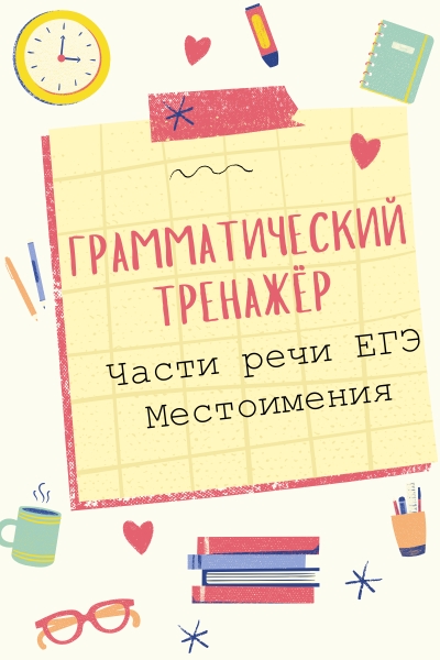 Тренажёр поможет в подготовке к 1,7,13,14,19,26 заданиям ЕГЭ. В каждом тексте много местоимений разных разрядов.