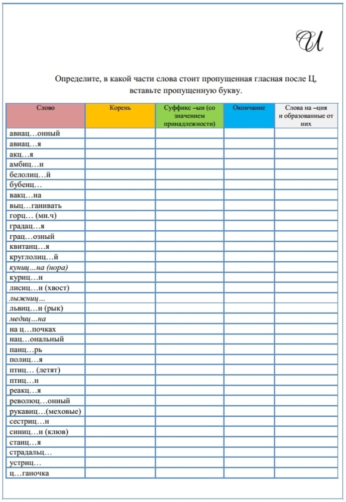 Примеры слов из ОБЗ ФИПИ выделены курсивом.
