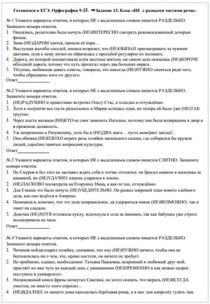 НЕ с причастиями- 10 заданий в формате ЕГЭ