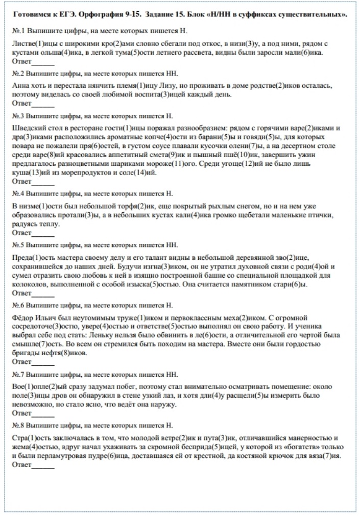 гласные перед суффиксом НН - 10 заданий в формате ЕГЭ