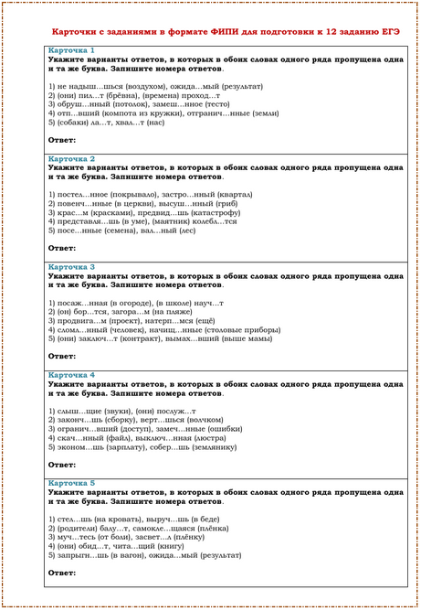 - 15 карточек для подготовки к 12 заданию ЕГЭ (формат ФИПИ);