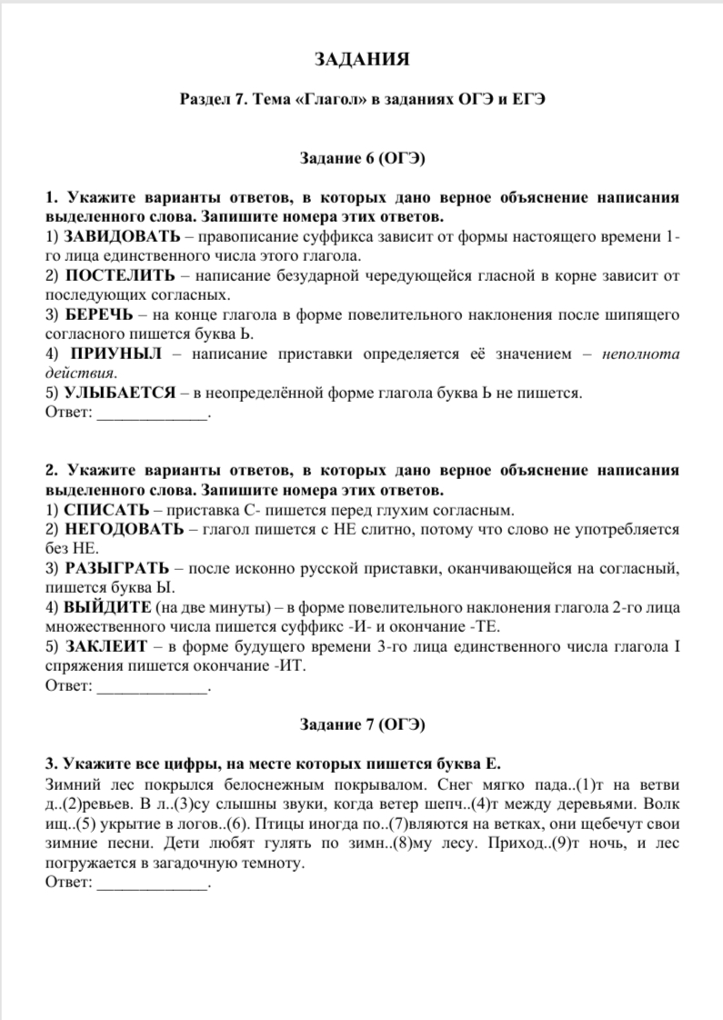 - задания ОГЭ, ЕГЭ, в которых есть тема выбранной части речи.